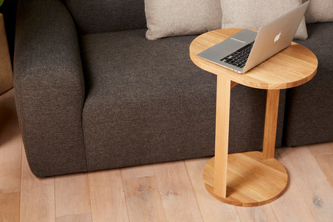 Named for tucking right into and under any lounge environment, Tuck Table nestles neatly both when in use and while awaiting a cup of joe. Crafted in solid white oak that carries all the way to the floor, the beauty of the natural grain speaks gently while providing a bold support for your laptop.