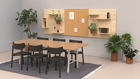 With Vert Panels, the writing is on the wall. The materials you know and love from our space defining collection have gone vertical. Add pegboards, whiteboards and corkboards to walls for added flexibility, collaboration, and warmth. Secured with French cleats, these panels are a cinch to install and entirely modular. Accessorize your wall for added functionality to existing fixtures.